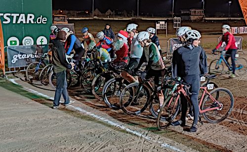 Von der alten Försterei können wir gleich weiter springen zum anderen Ende der Wuhlheide in Karlshorst. Dort treffen wir auf der Trabrennbahn wieder auf Berliner Radsport und zwar auf das Cross- und Gravelrennen des Radteam Cöpenick. Das Gravelrennen ist Berlins einziges Radrennen unter Flutlicht und vermutlich deutschlandweit das einzige Radrennen auf dem Geläuf einer Pferderennbahn. Das Crossrennen bildet das Finale der Crossmania-Rennserie in Berlin und Brandenburg. Und mit dem neuen Rennen im Olympiapark kehrte der BRC Zugvogel zurück in den Kreis der Cross-Veranstalter. Erfreulich ist vor allem zu konstatieren, dass es mit weiteren Rennen nun wieder 9 Cyclocross-Veranstaltungen in Berlin/Brandenburg und damit eine echte Cross-Saison gibt! Übrigens ist auch beim Cyclocross die BRV-Koordinatorin, Clara Haueis-Robinson vom Radteam Cöpenick, selbst ambitionierte aktive Sportlerin!