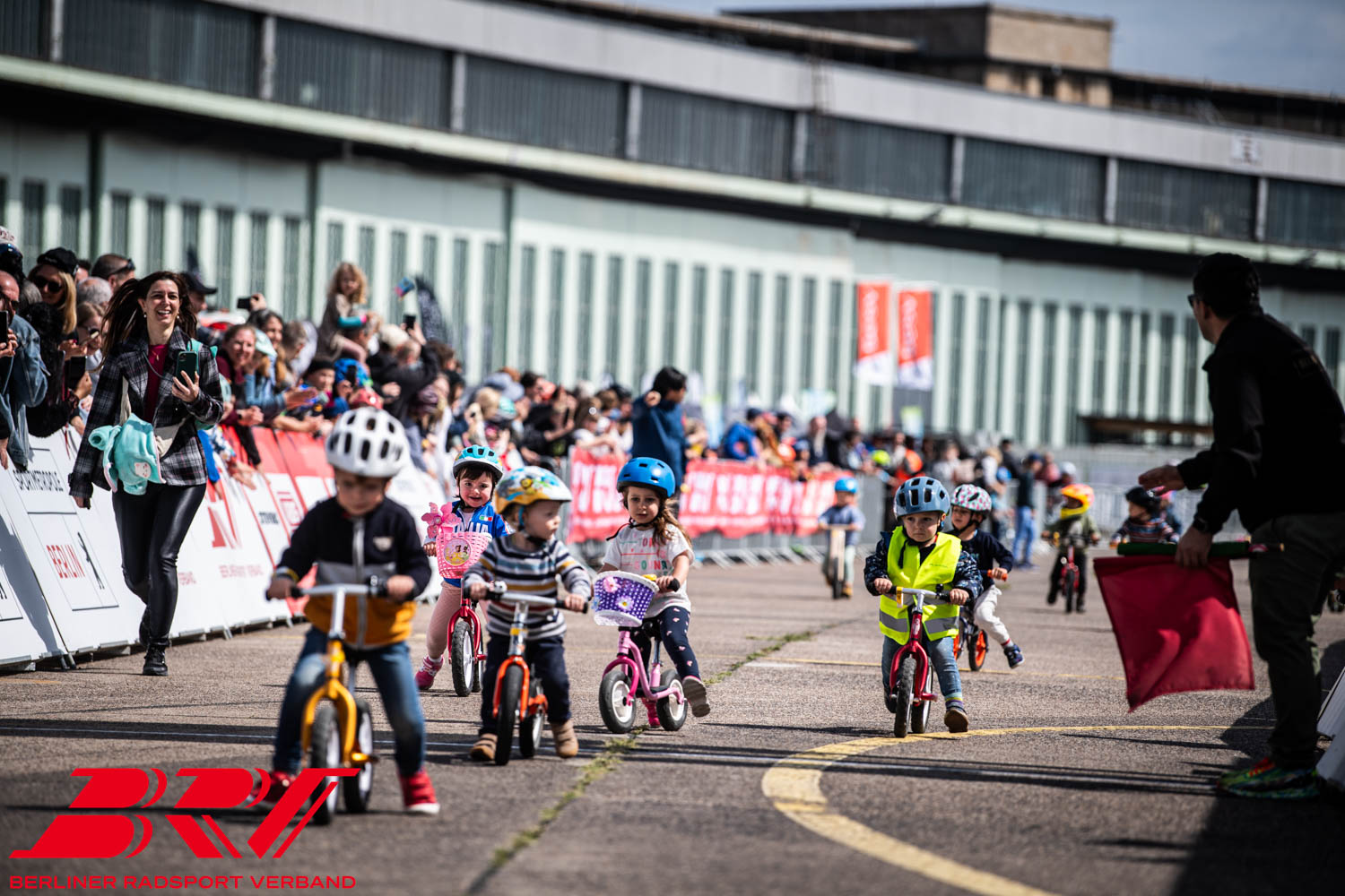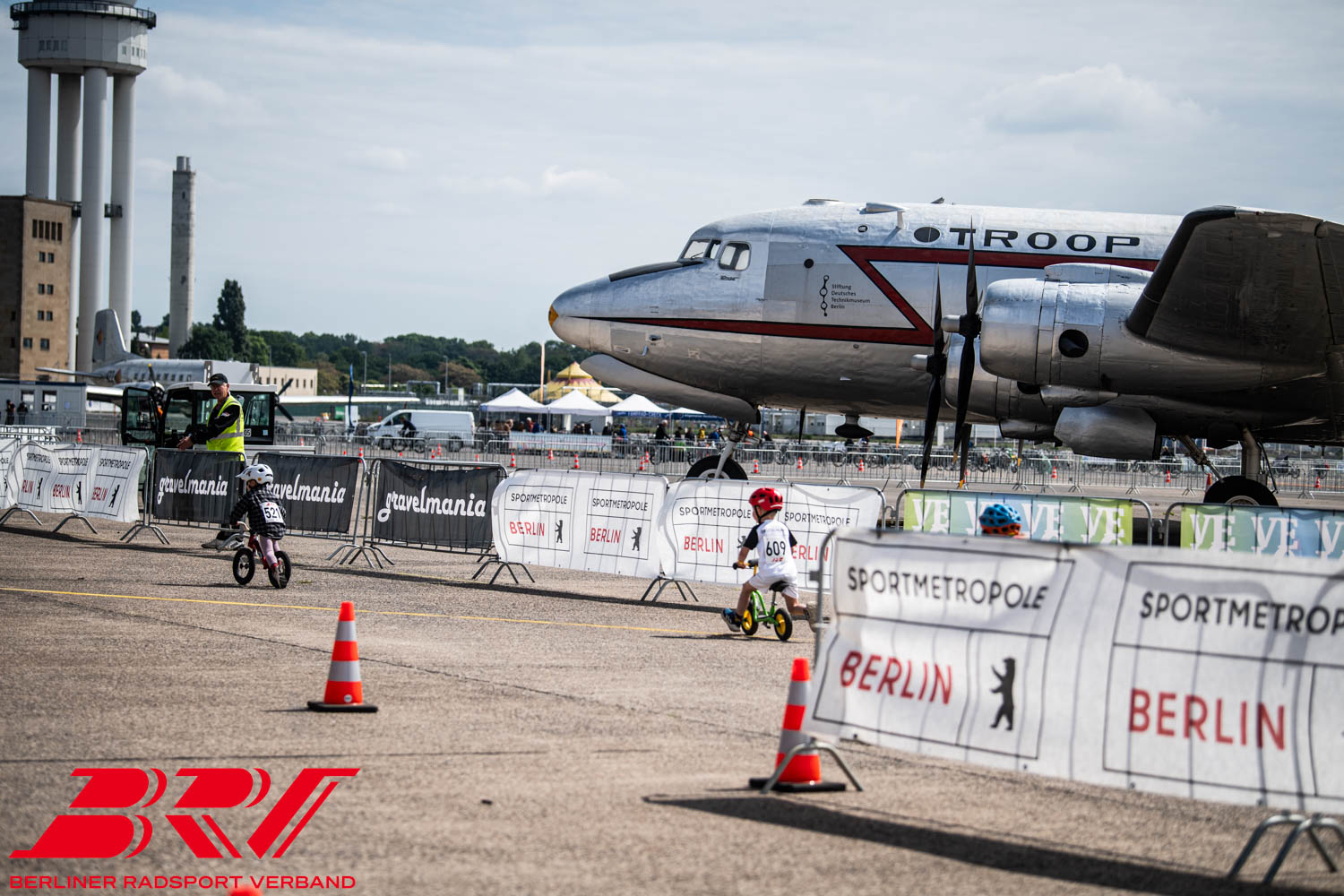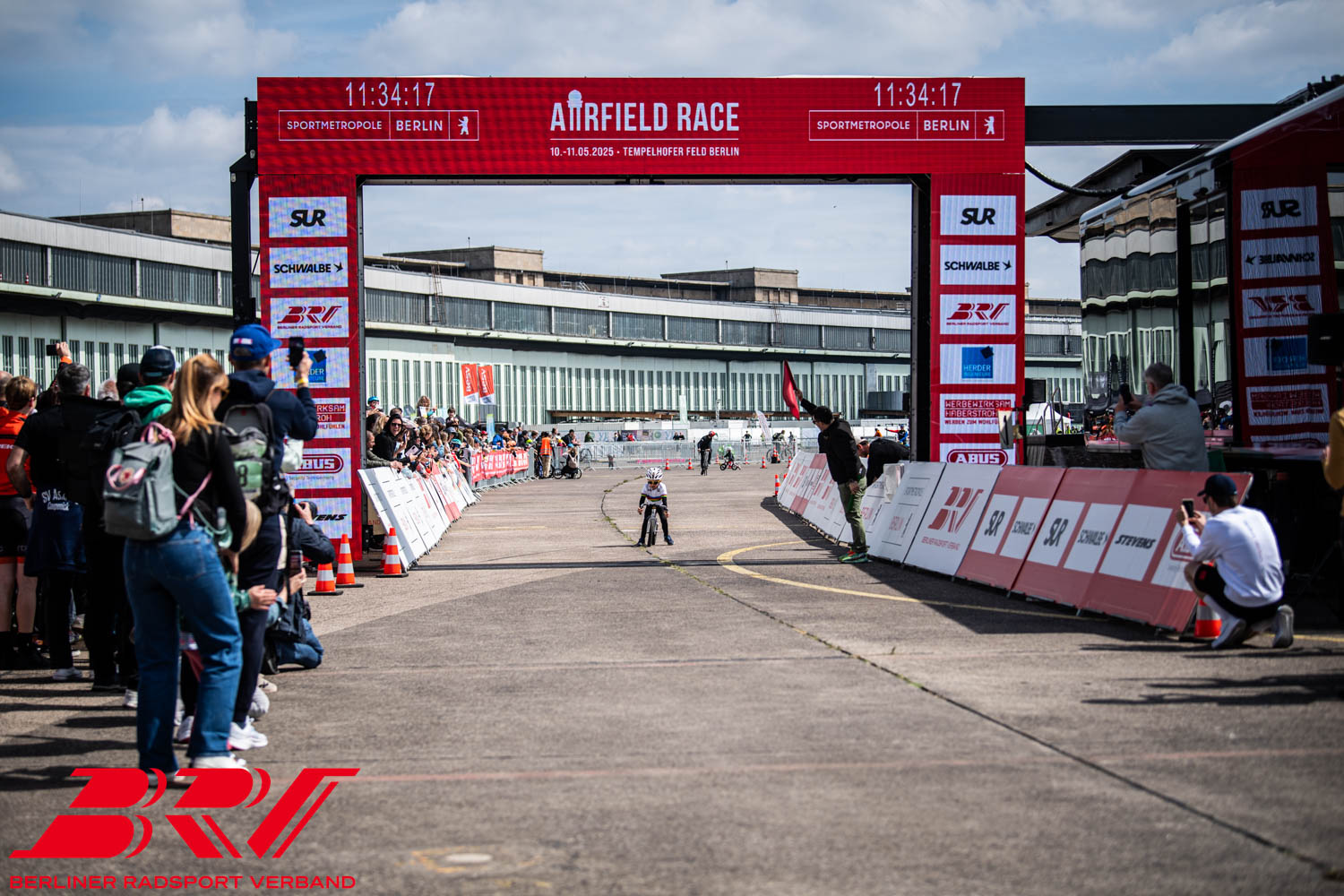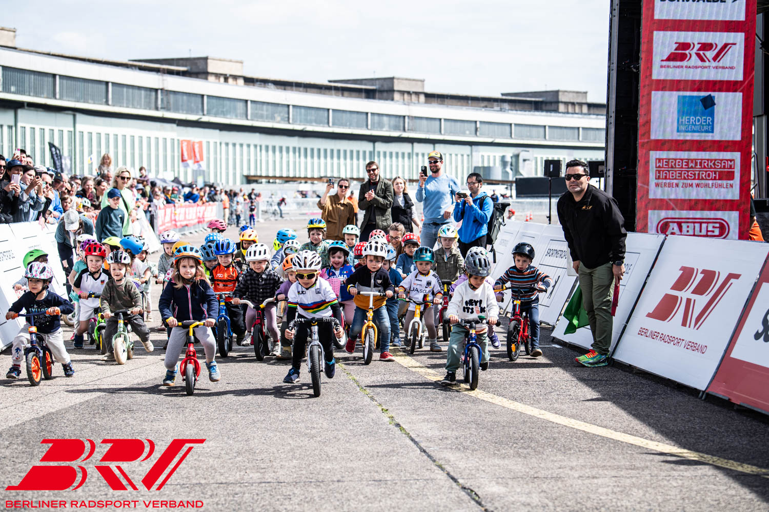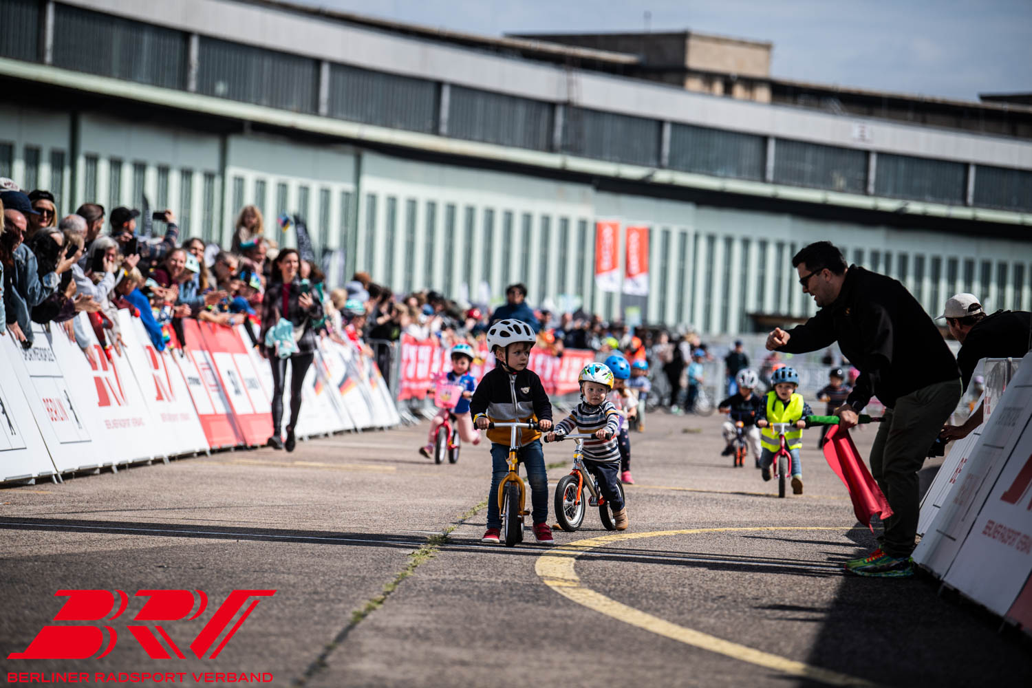 Strahlende und lachende Kinder, begeisterte Eltern entlang des 250 Meter langen Rundkurses: Das Laufradrennen im Rahmen des Airfield Race 2025 auf dem Flughafen Tempelhof war wieder der heimliche Höhepunkt der zweitägigen Veranstaltung des Berliner Radsport Verbandes (BRV). Für mehr als 60 Kinder im Alter von zwei bis fünf Jahren ging es diesmal bei strahlendem Sonnschein an den Start und hieß es: „Helm auf, Nummer ran und ab aufs Rad!“ „Es war wieder ein tolles Rennen. Wir haben jedes Jahr mehr Kinder, von denen hoffentlich das eine oder andere den Weg zum Radsport finden wird. Dafür haben wir in Berlin mehr als 30 Vereine“, sagte Claudia Ciurea, Präsident vom BRV.
