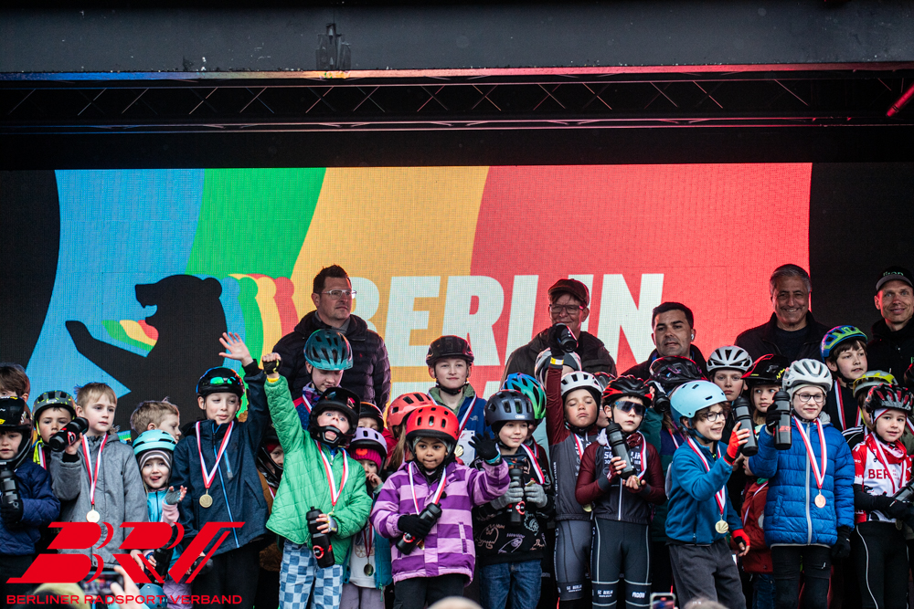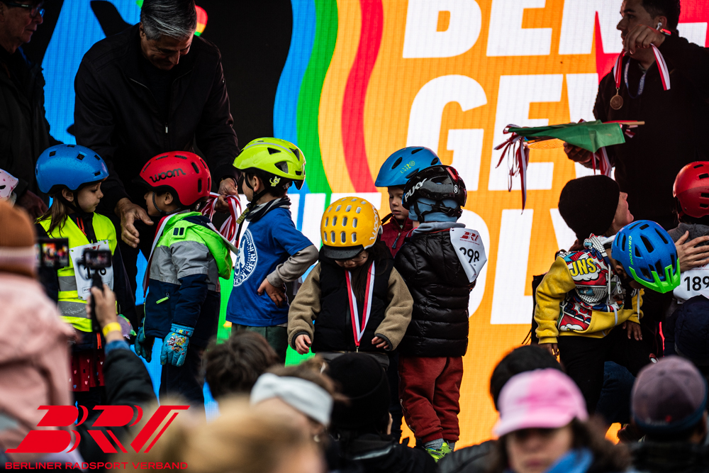 Alle Kinder waren mit großem Spaß dabei, es gab (fast) keine Stürze und keine Tränen. Angefeuert von den nicht minder begeisterten Eltern durften später aber auch die Nachzügler im Ziel zur großen Siegerehrung mit auf die Bühne: dort gab es für alle Kinder eine Medaille und eine Trinkflasche. Durchgeführt wurde die Siegerehrung von Tony Martin, dem viermaligen Weltmeister im Zeitfahren.